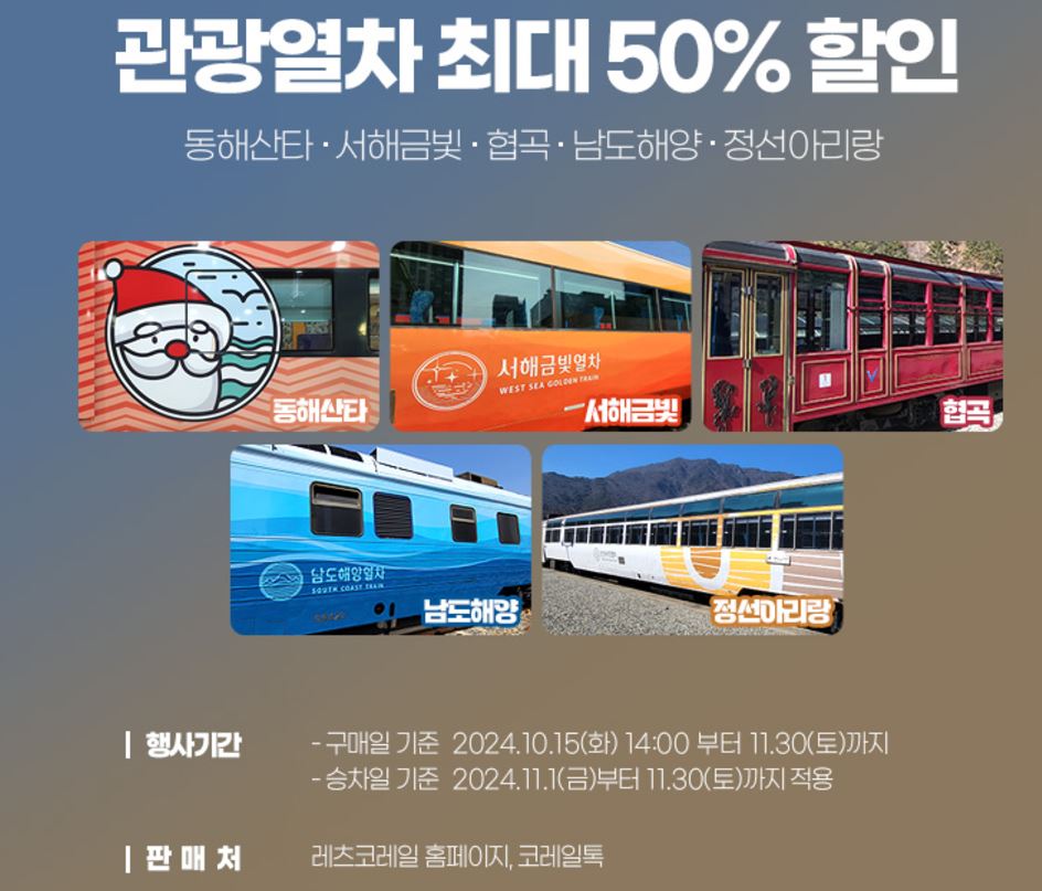 11월 여행을 계획하고 있다면, 동해산타열차의 50% 할인 이벤트를 꼭 확인하세요!
