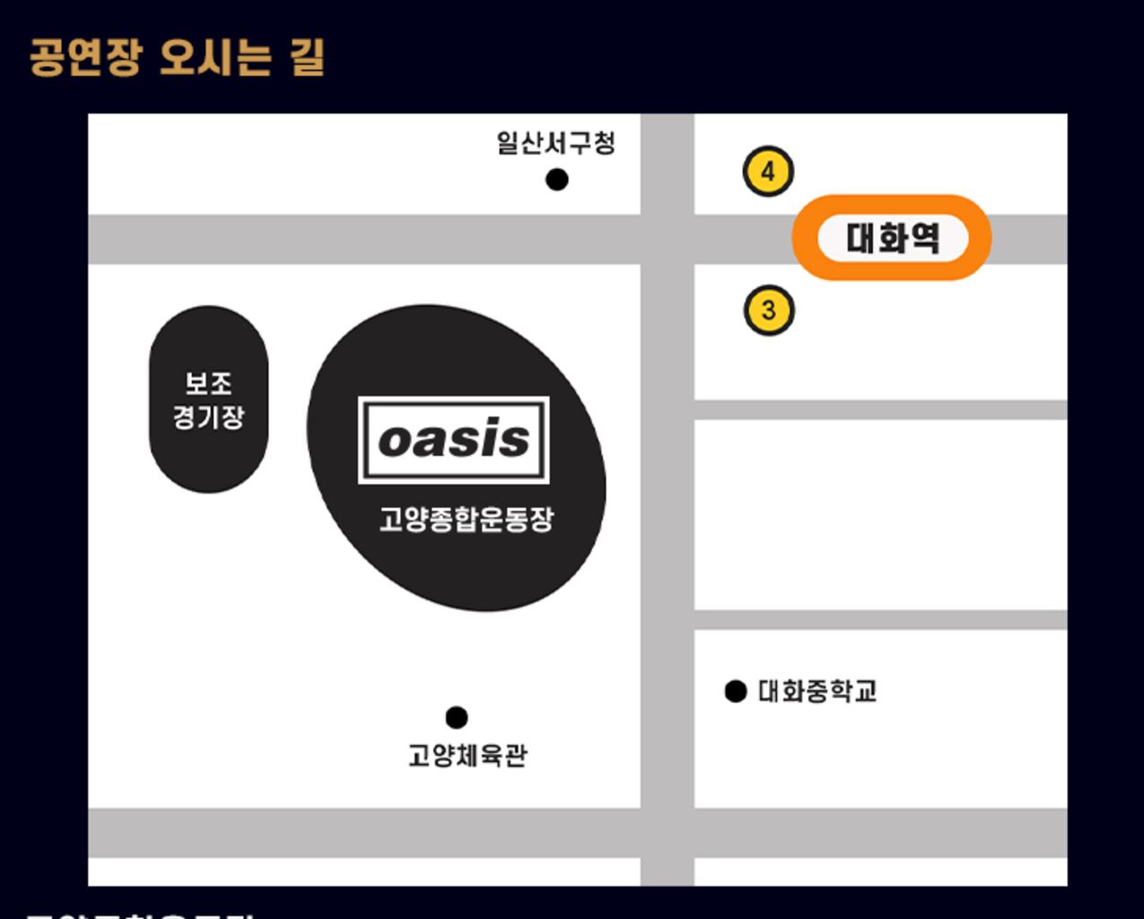 공연장인 고양종합운동장은 지하철 3호선 대화역 3번 출구에서 도보 3분 거리입니다.