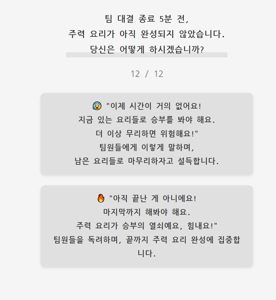 테스트는 총 12개의 질문으로 이뤄졌는데요.
