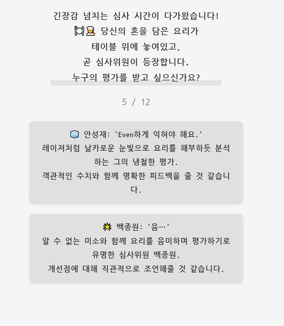 질문들을 읽다 보니 어느새 흑백요리사의 캐릭터들이