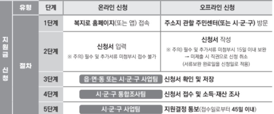 오프라인 신청의 경우 주소지 관할 주민센터(또는 시·군 ·구)에 방문하여