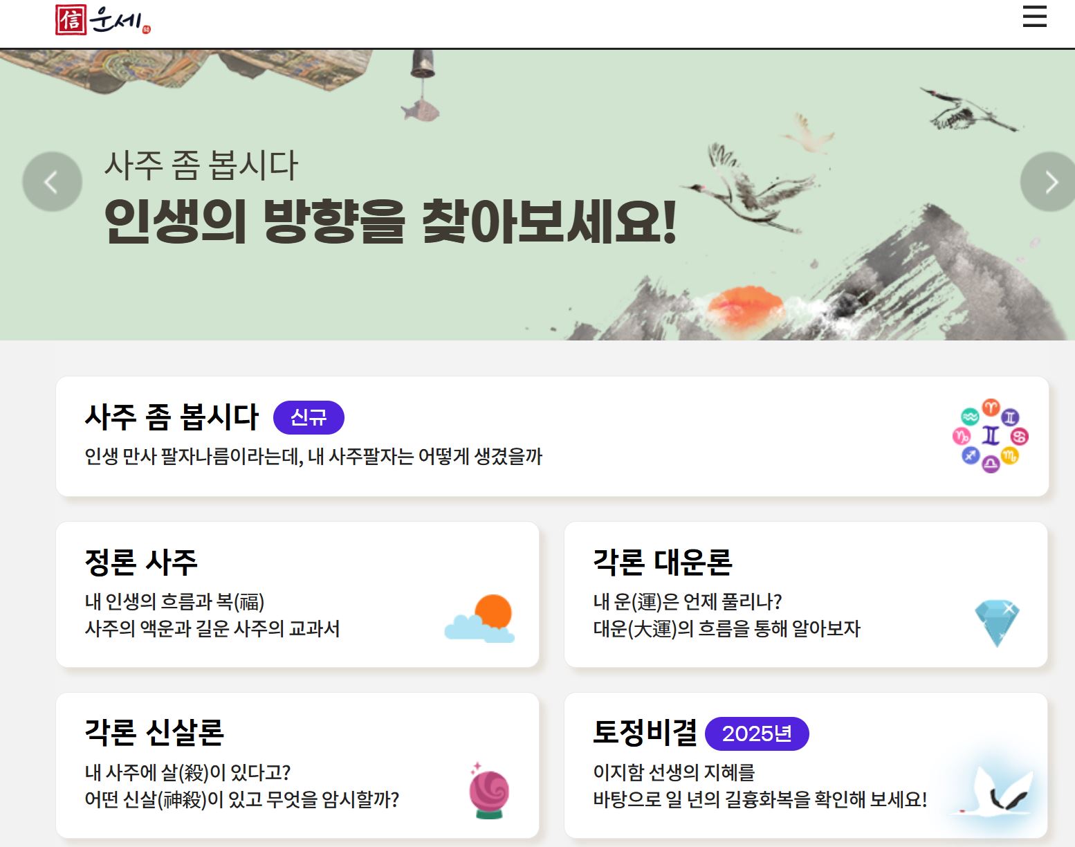 정통 사주 분석, 띠별 운세, 연애와 궁합 분석, 간단한 꿈풀이 등