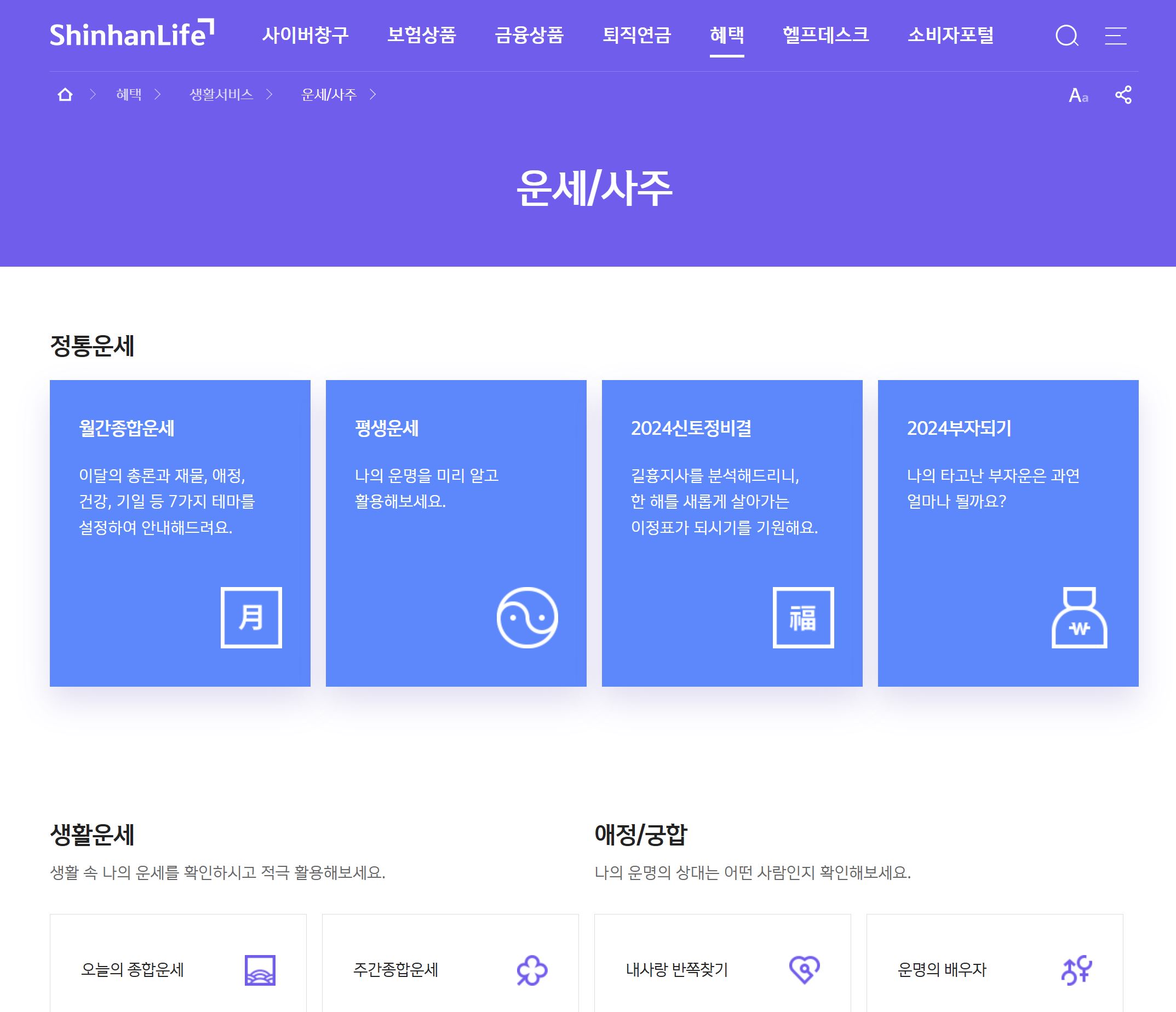 신한라이프는 정통 신년운세와 토정비결을 무료로 제공합니다.