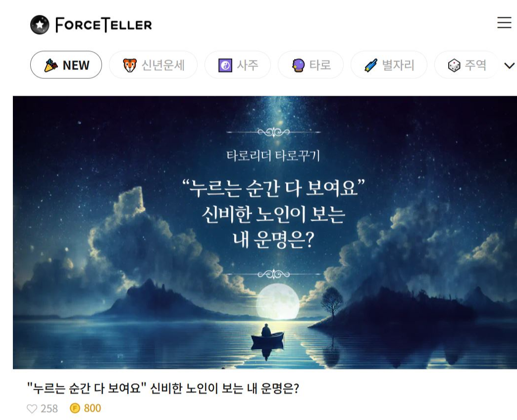 신년운세를 포함해 타로, 사주, 궁합 등 다양한 기능을 제공합니다